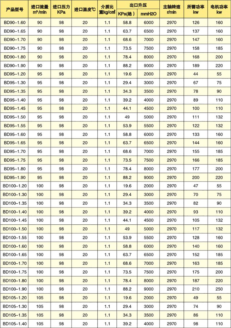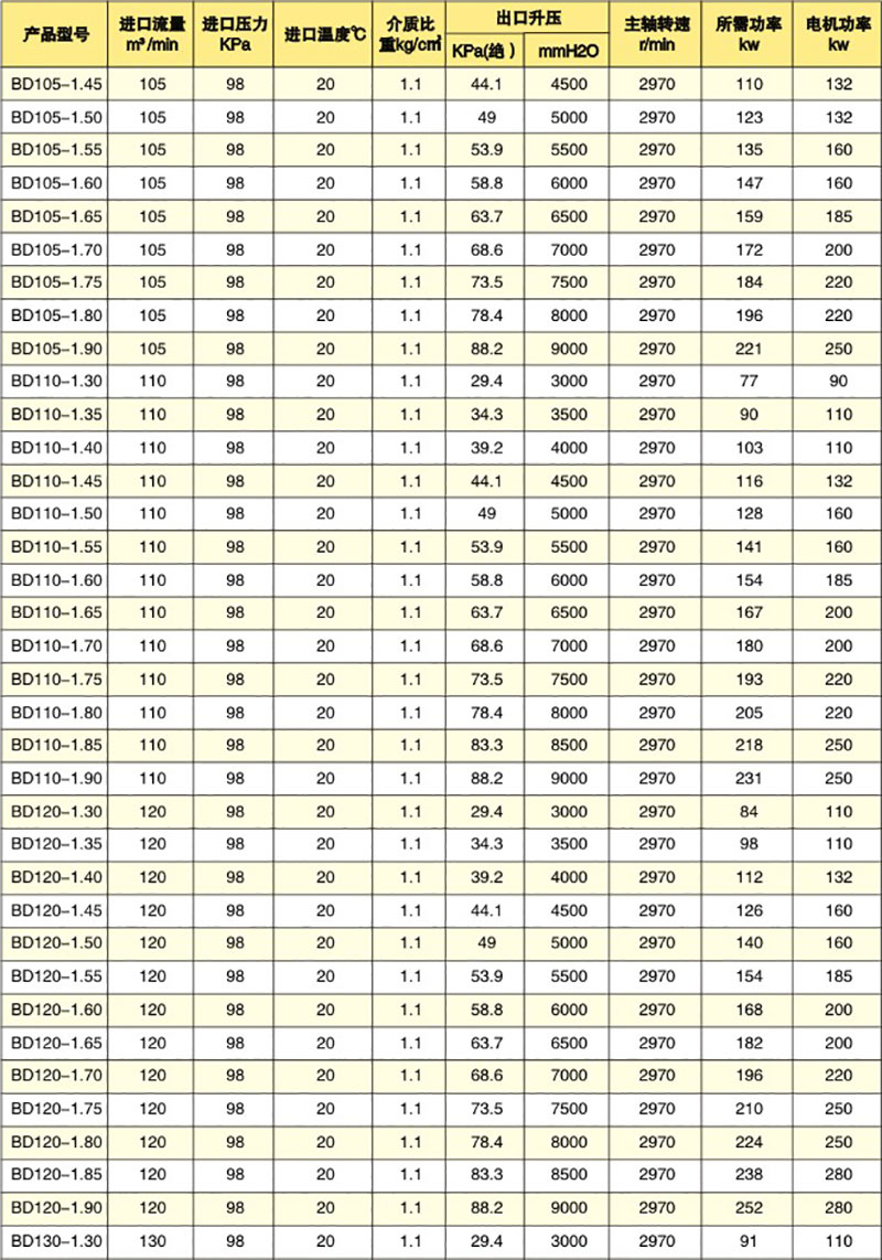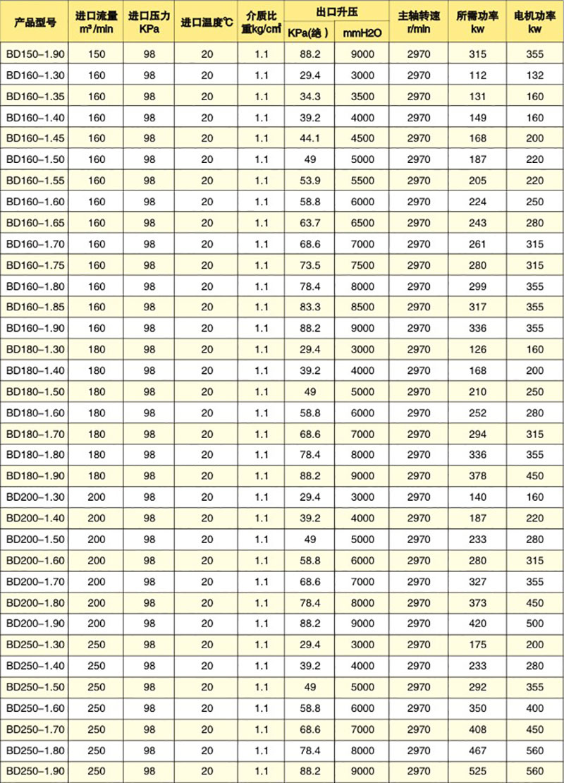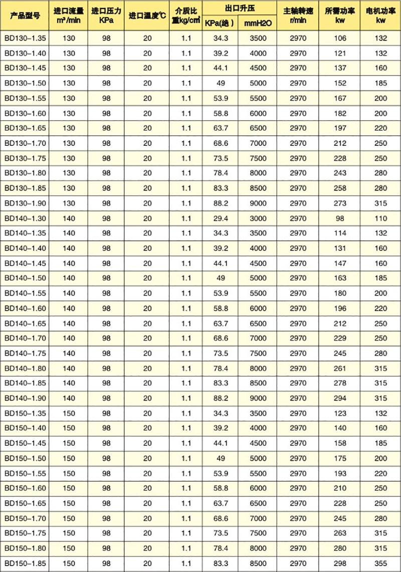 多級離心風(fēng)機參數(shù)表