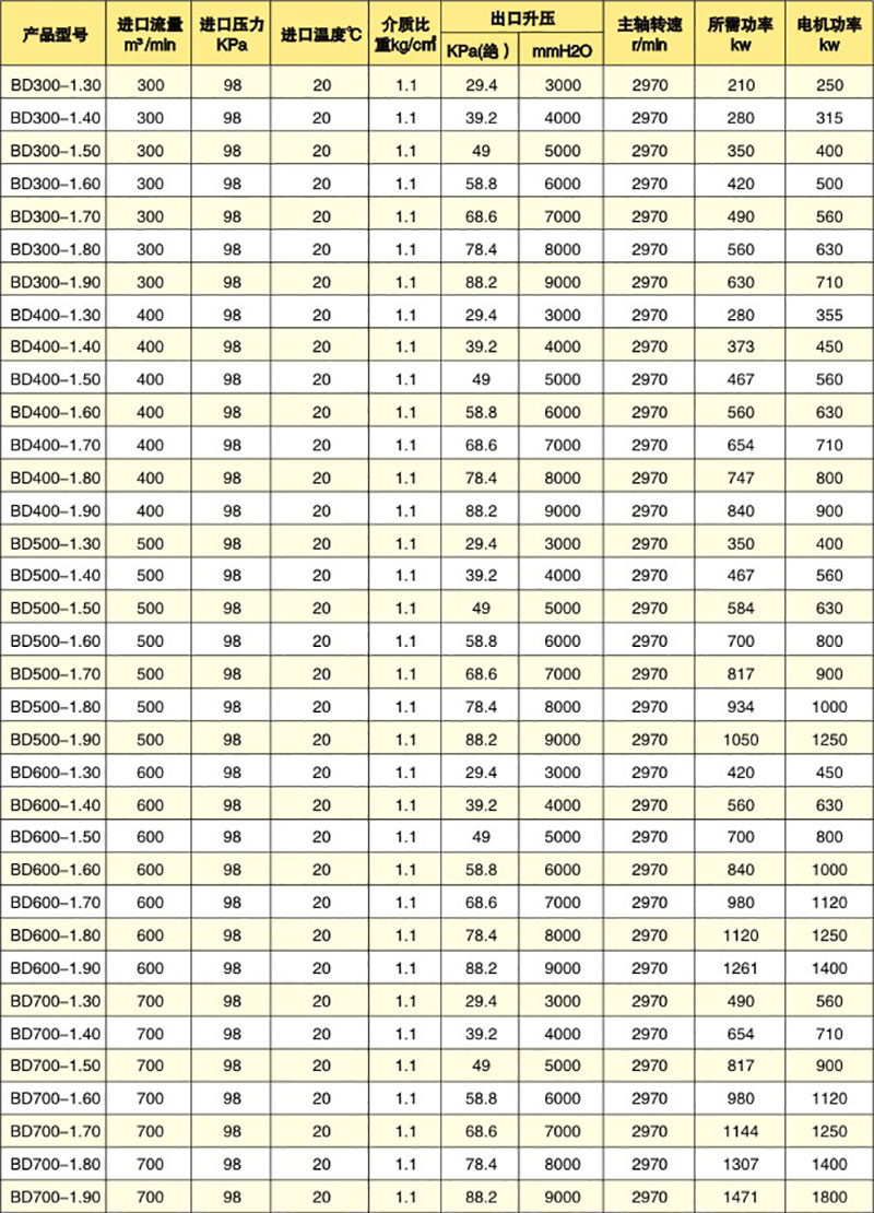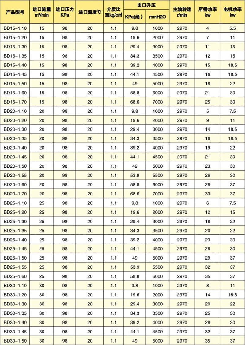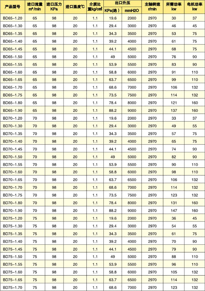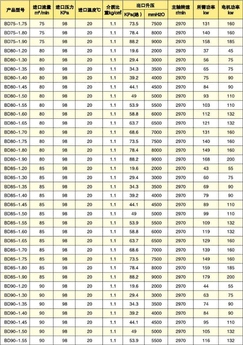 多級離心風(fēng)機參數(shù)表