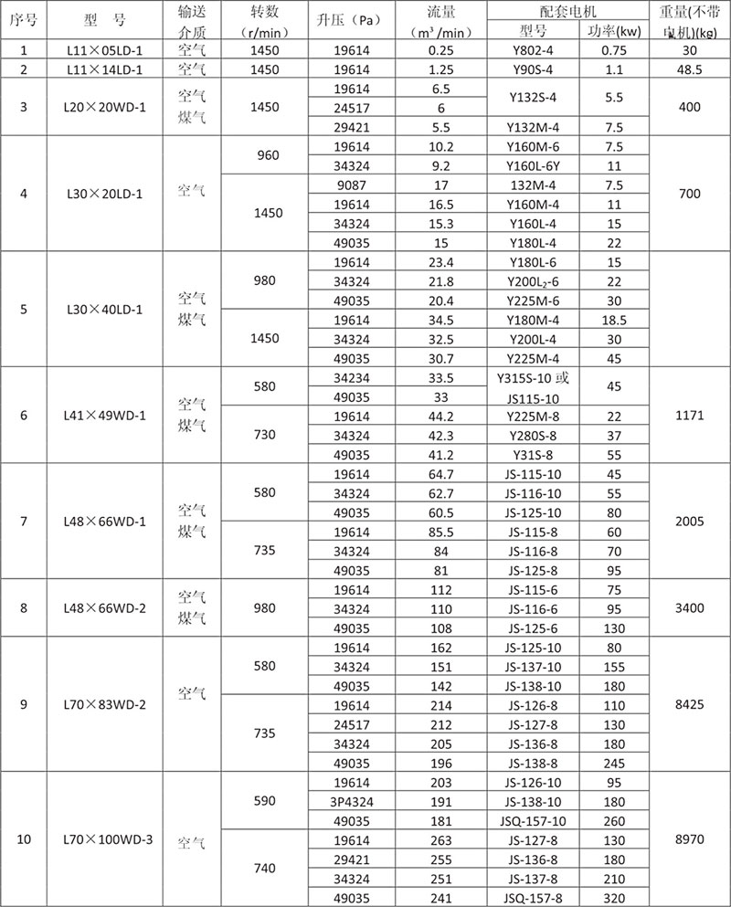 本產(chǎn)品是使用范圍廣的常規(guī)品種,適用于壓送清潔空氣,清潔煤氣。