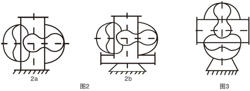 臥式——鼓風(fēng)機(jī)的兩個(gè)轉(zhuǎn)子中心線在水平面內(nèi),氣體為垂直流向(如圖2a、2b所示)
